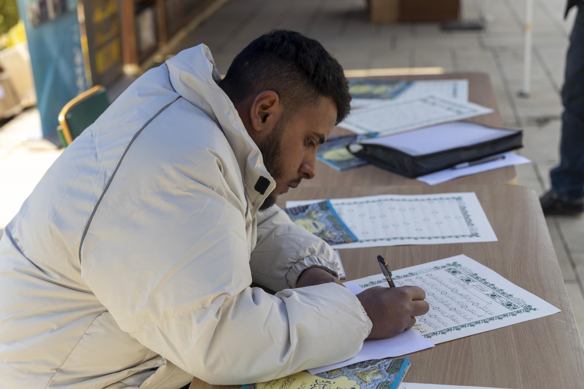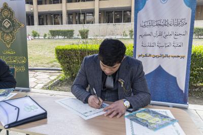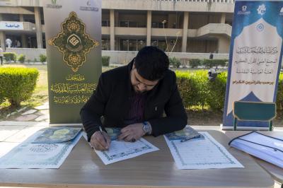 وشهدت المحطة التي تستمر خمسة أيام، تفاعلًا كبيرًا من طلبة كليات الجامعة للمشاركة في كتابة آيات من القرآن الكريم.