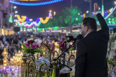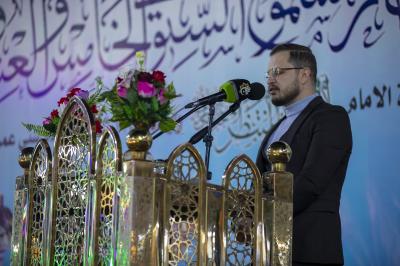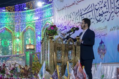 وأُقِيم المهرجان في باب القبلة لمرقد أبي الفضل العباس (عليه السلام) تحت شعار (أين استقرت بك النوى)، وبحضور مسؤولي العتبتَين المقدّستَينِ وشخصيات دينية ورسمية وجمعٍ غفير من الزائرين.