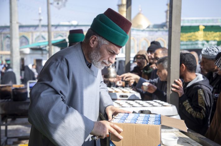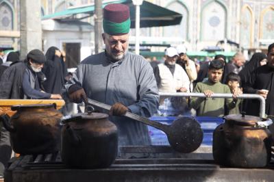 تواصل ملاكات شعبة السادة الخدم في العتبة العباسية المقدسة تقديم خدماتها لزائري النصف من شعبان.