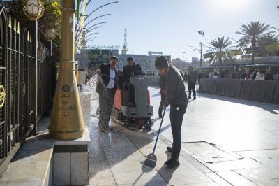Les travaux de nettoyage ont concerné la place entre les deux sanctuaires saints et les rues avoisinantes, l’enlèvement des déchets et le lavage des routes pour assurer la propreté et la beauté de la zone.
