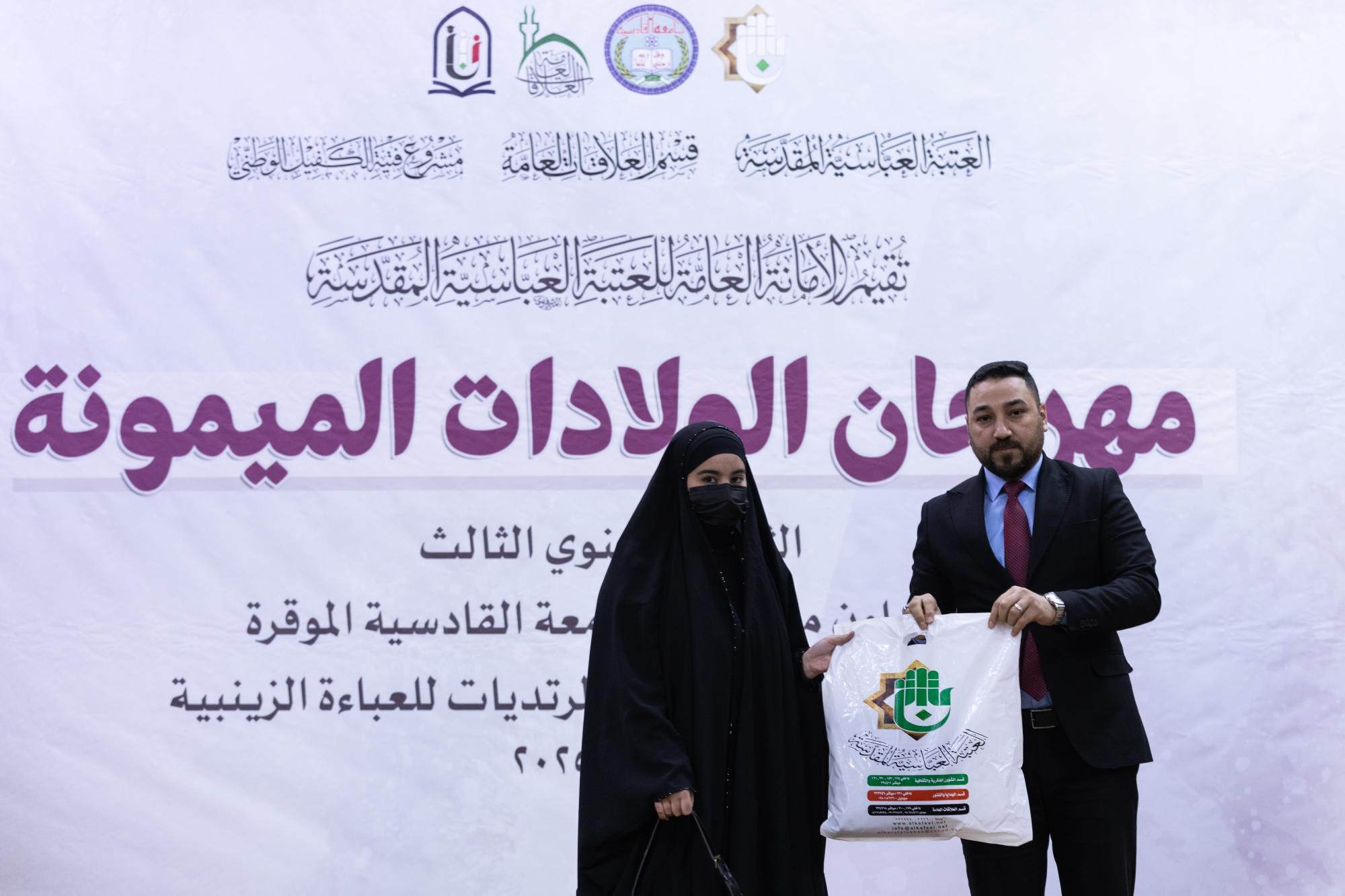 Le sanctuaire saint Al Abbas (p) a honoré plus de 300 étudiantes, portant l'abaya irakienne, à l'université Al-Qadisiyah, dans le cadre du troisième festival culturel annuel des naissances de bon augure.