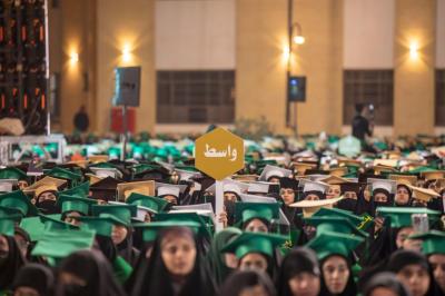 Hz. İmam Hüseyin'in (a.s.) bu mübarek varlığı özel bir varlıktır. Bu törene katılmak için her yıl bize sunulan büyük sayıyı biliyorsunuz, gerçekten bu muazzam bir sayı, ancak mekan bu sayıdan daha fazlasını barındırmaya izin vermiyor, bu yüzden seçim bu sınırlı sayı üzerine düşüyor ve elhamdülillah sizler (o sayının) kapsadıklarındansınız. Bu konuda önemli bir (mesele) var kızlarım, şimdi gözlemleyin, inşallah her yerdeki tüm kızlarım; Allah (şahit) samimi dileklerle, daima baş dik, himmet, boy ve değerlerle ilgili her şey (var). Bu özel mezuniyet kavramından bahsedebilirim, bazı davranışlar var ki insan onlardan utanıyor, kelimenin tam anlamıyla utanıyor, yani herhangi bir şeyi ima etmek istemiyorum, ama bu kavramdan, mezuniyet kavramından bahsediyorum. Ancak siz değil, tam tersine, kendinizi başkalarıyla karşılaştırdığınızda güçlü bir şekilde konuşuyorsunuz, bu mezuniyet hakkında ideal bir durumla konuşuyorsunuz. Başkalarına nasıl mezun oldun diye sorduğunuzda -tabii ki genellemiyorum- ağırbaşlı olmayan durumları, kadının vakarı ve hayasına uygun olmayan durumları kastediyorum, o mezun kız soruya doğrudan cevap vermemeye çalışır, çünkü yaptığından utanıyor, ama sen öyle değilsin, güçlü bir şekilde diyorsun ki: Evet... İki Harem arasında mezun oldum ve sanki bir kraliçeymişim gibi en iyi şekilde karşılandım, bana bir taç giydirdiler, babam ve annem benimle özel bir şekilde sevindiler ve beni özel bir şekilde karşıladılar. İki Harem arasında üzerime şekerlemeler ve çiçekler serpmeye başladılar, sanki gökten onlara inmişim gibi, ziyaret ettiğimde herkes özel bir bakışla bakıyordu, bu asla tekrarlanmaz ve herkes bunu temenni eder. Önceki törenlerde bazılarından duydum, keşke bu yerde mezun olsaydık, keşke zaman bizi geri götürse ve böyle mezun olsaydık dediler. Ve siz bunu ailenizden duyacaksınız eğer duymadıysanız. Burası özel bir mekan, özel bir ruhaniyeti olan bir mekan ve bazı erkek kardeşlerin -erkeklerin mezuniyet törenlerinde- ağladığını gördüm, bazı kızlarımız da bana kızlarımızın çoğunun da ağladığını iletti.