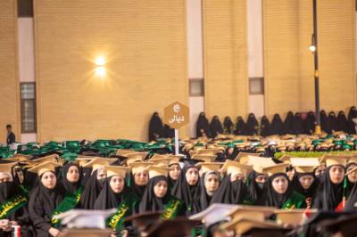 Değerler önemlidir kızlarım, değerleri koruyun, yolunu tutanların azlığından dolayı hak yolundan ıssızlık duymayın. Gerçekten sen güçlü bir kadınsın, asla ben zayıfım deme, ben bu sözcükten nefret ediyorum, sen - Yüce Allah'a hamdolsun - güçlüsün, ilkelerinle, değerlerle güçlüsün, şimdi söylediğim gibi, her birinin elinde bir inci var (mezuniyet incisi). Kutlaman bu şekilde olduğu sürece… Bu duruştan başlayarak, yemin etmeye ve mübarek hareme girişe, İki Harem arasında ve Hz. İmam Hüseyin'in (a.s.) yanında, bu ağırlanmayla geri dönmenize kadar ve şimdi bu mübarek mekanda olmanıza kadar (varan bu kutlama yaşadın)… O halde siz işin bilimsel tarafının yanı sıra bu güç, ağırbaşlılık ve iffete de sahipsiniz.
