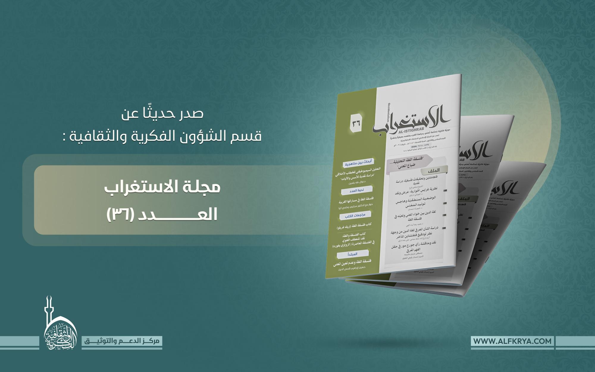 المركز الإسلامي للدراسات الاستراتيجية التابع للقسم، يصدر العدد 36 من مجلة "الاستغراب" الفصليّة المحكّمة.