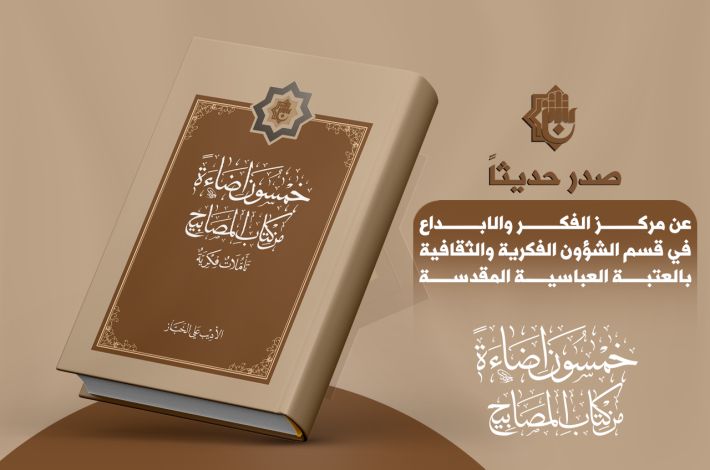 وقال رئيس القسم، السيد عقيل الياسري، إنّ " مركز الفكر والإبداع التابع للقسم أصدر كتابًا بعنوان (خمسون إضاءة من كتاب المصابيح: تأمّلات فكرية) من تأليف الأديب علي الخبّاز، يتناول جماليات الرؤية الفكرية والروحية في كتاب (المصابيح) لسماحة العلّامة السيد أحمد الصافي (دام عزه)، الذي يشرح أدعية مختارة من الصحيفة السجّاديّة.