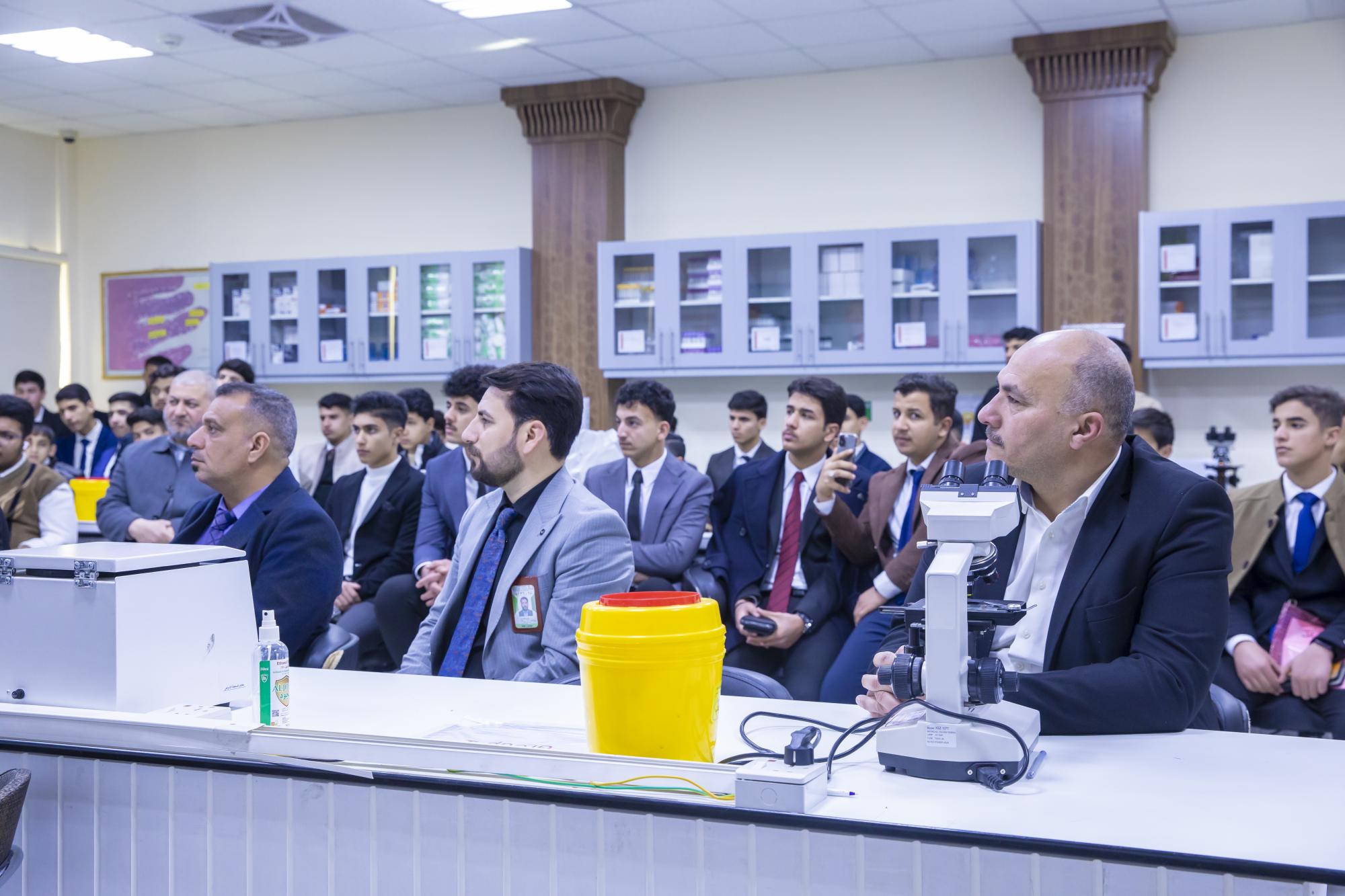 وقال مساعد رئيس جامعة العميد الدكتور مشتاق كريم: إنّ "جامعة العميد استقبلت وفدًا ضمّ أساتذة وطلابًا من مدارس محافظة بابل؛ لتعريفهم بالبيئة الأكاديمية لديهم والاطّلاع على مرافقها العلمية من مختبرات وقاعات دراسية، كما قدمت لهم محاضرة عن الجامعة وكيفية حصولها على شهادات الآيزو".