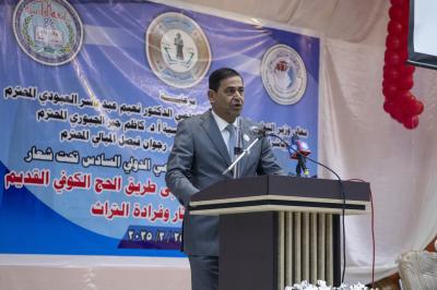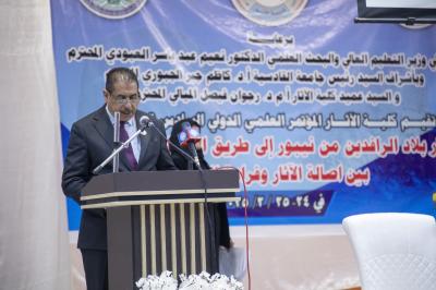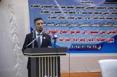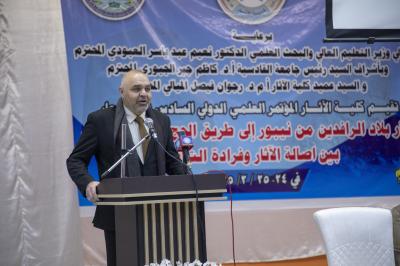 Il a poursuivi : « D'où la planification des institutions archéologiques, culturelles et muséales en général, et de la faculté d'archéologie de l'Université Al-Qadisiyah en particulier, qui supervise les événements et les activités de la sixième Conférence scientifique internationale sur les antiquités de la Mésopotamie, tenue ) la faculté d'archéologie, qui se tient actuellement sous les auspices du ministère de l'Enseignement supérieur et de la Recherche scientifique, la Présidence de l'Université Al-Qadisiyah et le Décanat de la faculté d'Archéologie, sous le slogan : (Antiquités de la Mésopotamie de Nippur à l'ancienne route de pèlerinage de Kufi entre l'authenticité des antiquités et l'unicité du patrimoine) pour la période du 24 au 25/2/2025, dans le cadre de plusieurs axes d'antiquités et d'études anciennes.