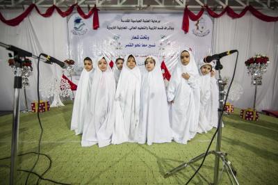 The ceremony included many activities presented by the kindergarten children, as well as the ceremony of delivering the flag of the Al-Abbas's (p) holy shrine from the children of preliminary class to those in the kindergarten, in addition to the distribution of gifts and prizes to the children.
