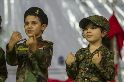 Under the slogan: "We walk together to the moon", the kindergarten and nursery of Al-'Ameed of the Department of Education and Higher Education at the Al-Abbas's (p) holy shrine celebrated the graduation of the second academic year (2014-2015) under the name "The children of the Popular Mobilization."