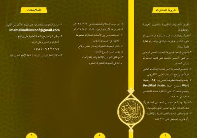 علمًا أنّ آخر موعد لاستلام البحوث كاملة في ١ آيار - ٢٠٢٥م، على أنْ يكون البحث غير مستلّ أو منشور أو مقبول للنشر، وغير مشارك في مؤتمر أو فعاليّة علميّة سابقة، وأنْ يَتّبعَ الباحث شروطَ البحث العِلميِّ الرصين ويراعي الأسسَ العلميّة في كتابة البحوث وتوثيق المصادر.