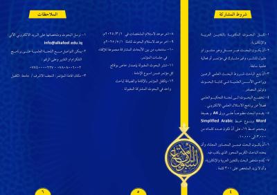 علمًا أنّ آخر موعدٍ لاستلام البحوث كاملةً في 1 آيار/ 2025م، على أنْ يكون البحث غير مستلّ وغير منشور أو مقبول للنشر، وغير مشاركٍ في مؤتمر أو فعاليّة علميّة سابقة، وأنْ يتّبعَ الباحث شروطَ البحث العِلميِّ الرصين ويراعي الأسس العلميّة في كتابة البحوث وتوثيق المصادر.