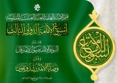 ويقام المؤتمر في تاريخ 22 ذي الحجة 1446هـ ضمنَ فعاليات أسبوع الإمامة العِلميّ الدَّولي الثالث، الذي ستنظّمه الأمانة العامّة للعتبة العبّاسيّة المُقدّسة، تحت شعار: (النبوةُ والإِمامةُ صِنوان لا يفترِقان) وبعنوان: (وصايا الأئمَّة رشد وتقوى).