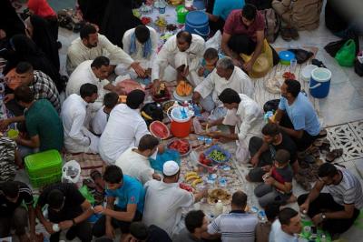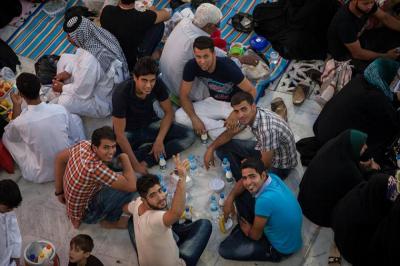 Bazı aileler de iftar yemeğini birlikte getirerek Beynel-Haremeyn Meydanı’nda ziyaretçilere dağıttı. Böylece Meydan kocaman bir iftar sofrasına dönüştü. Mukaddes Türbeler’in Hizmet İşleri Bölümleri de ziyaretçileri rahatlatmak için yoğun çaba sarf edip ziyaretçilere mefruşat, soğuk su, Kur’ân-i Kerîm ve dua ile ziyaret kitapları dağıttı. Ayrıca Mukaddes Türbeler bünyesindeki elektrikli araçlarla ziyaretçiler Mukaddes Ziyaretgâhlar içerisinde taşınırken oto araçlarla da Mukaddes Ziyaretgâhlar’a doğru ziyaretçiler taşındı. Mukaddes Hz. Huseyn ve Hz.Abbas (Allah'ın selâmı üzerlerine olsun) Türbeleri Konukevleri de iftar yemeği dağıttı. Ayrıca Mukaddes Türbeler’e bağlı Düzen Koruma bölümleri de ziyaretçilerin güvenliği için seferber oldu ve gerek evriyeleri gerekse de patlayıcı dedektörü araçlarıyla çok aktif bir biçimde bölgeyi taradı.