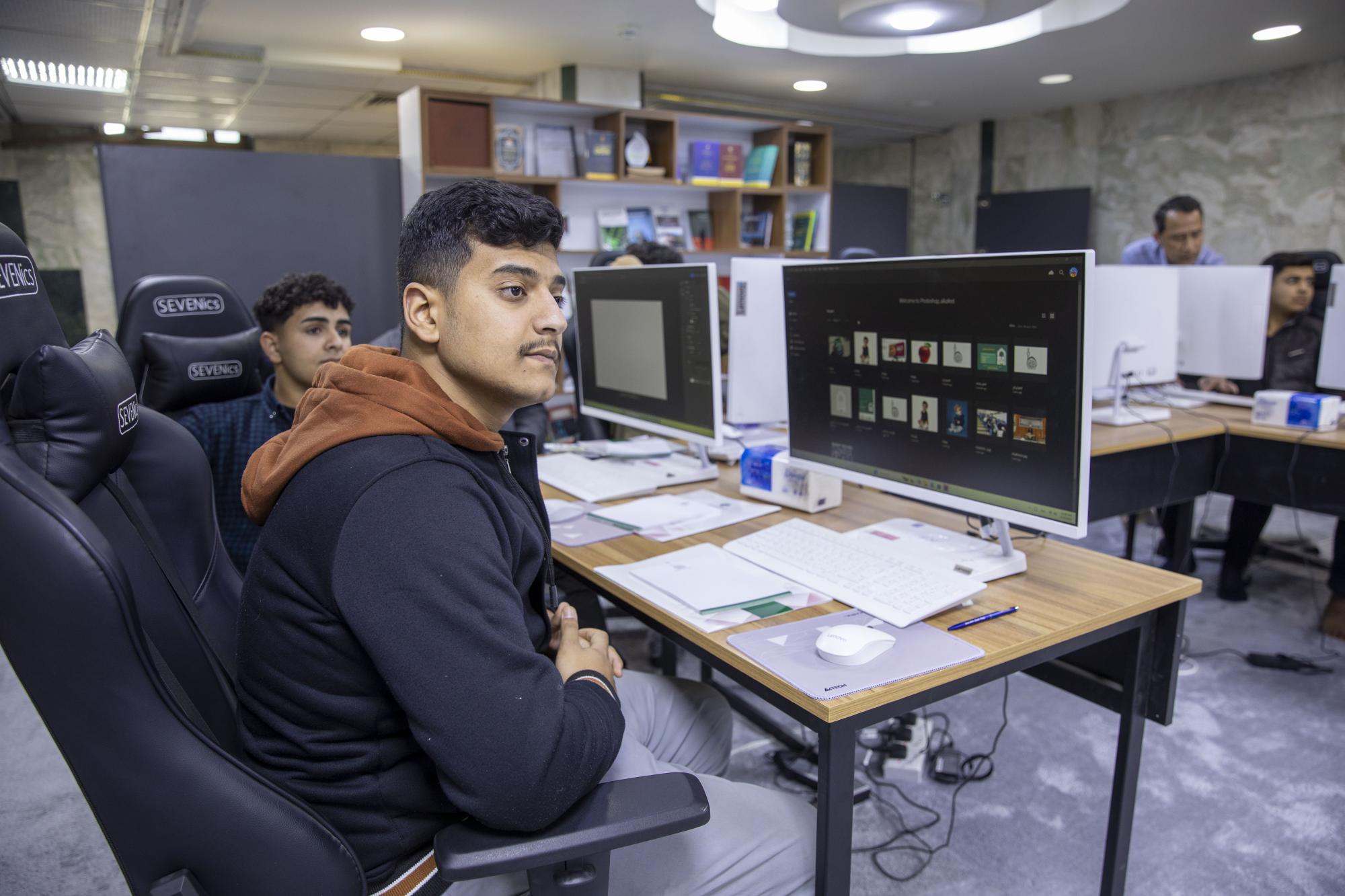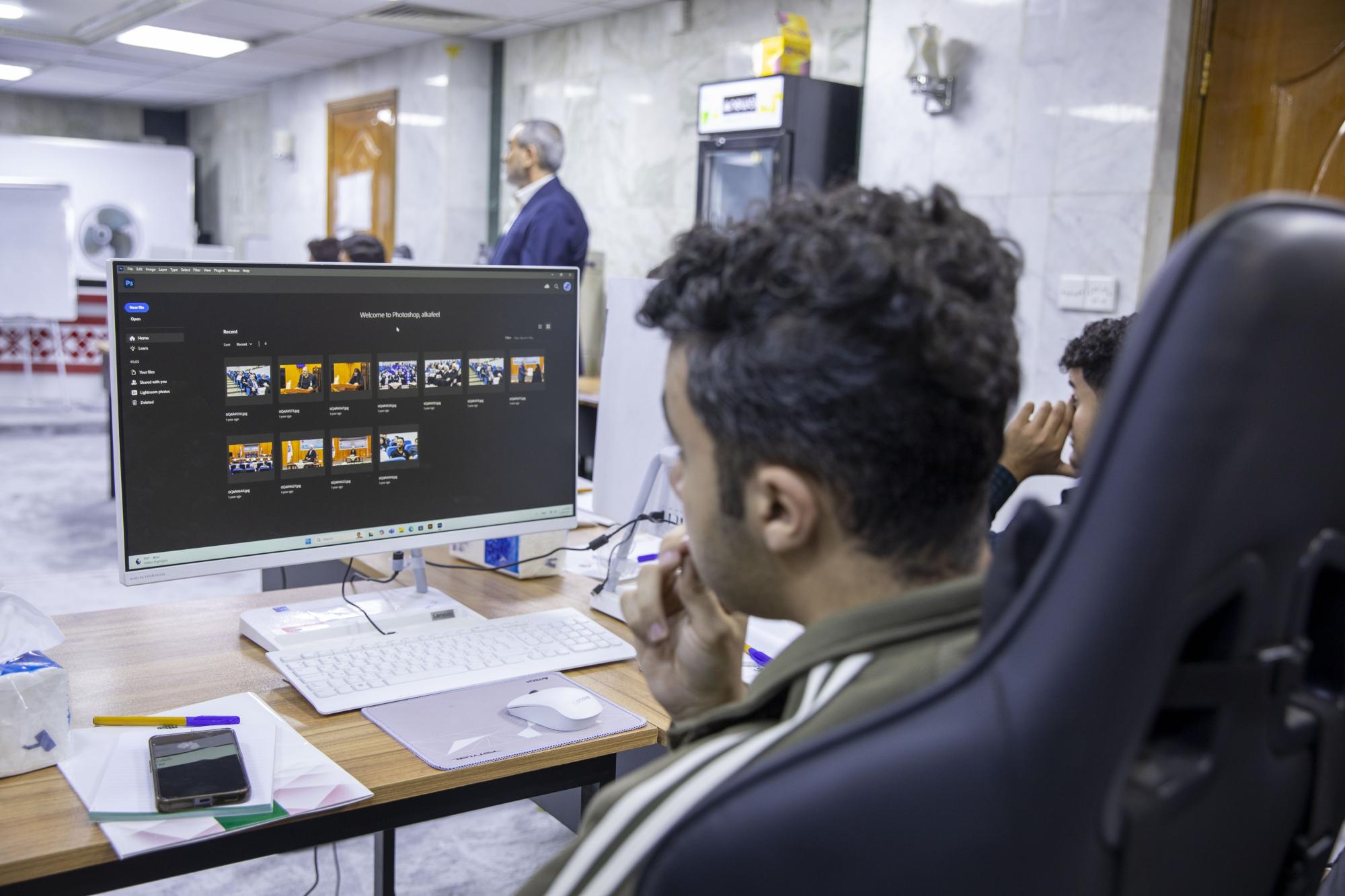 De son côté, le formateur du cours, M. Samir Abdul Zahra, a déclaré : « Le premier jour du cours, qui dure dix jours, nous avons présenté les bases de Photoshop, les principes de la conception graphique et les outils et fonctions du programme. »