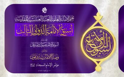 وتُنظّم العتبة العبّاسية المقدّسة فعّاليات النسخة الثالثة من أسبوع الإمامة تحت شعار: "النبوّة والإمامةُ صِنوانِ لا يَفترقان"، وبعنوان: "وصايا الأئمّة رشدٌ وتقوى"، وستُسلّط الضوء على الأئمّة الأطهار(عليهم السلام) من خلال مؤتمراتٍ علمية وفقراتٍ فكريّة وثقافيّة.