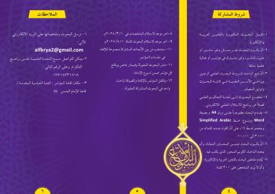 - يمكنكم إرسال البحوث وملخّصاتها عبر البريد الإلكتروني الآتي: (alfkrya2@gmail.com)، أو التواصل مع اللجنة العلمية عبر برنامج "تليجرام" على الرقم: (07718731818).