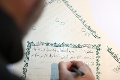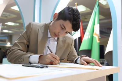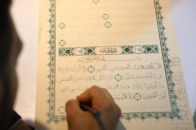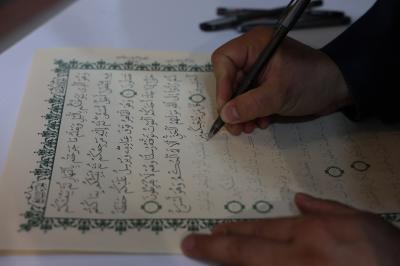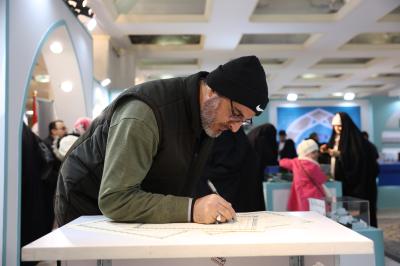 افتتحت العتبة العباسية المقدسة، متمثلة بالمجمَع العلميّ للقرآن الكريم، محطة لخط المصحف الشريف ضمن فعّاليات جناحها المشارك في معرض طهران الدولي للقرآن الكريم.