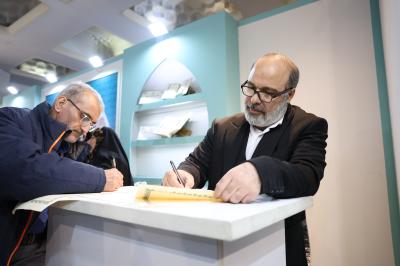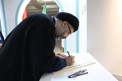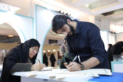 وقال رئيس المجمع، الدكتور مشتاق العلي، إنّ "محطة خط المصحف الشريف بأيدي زائري معرض طهران الدولي للقرآن الكريم، يُعد من أبرز الأنشطة الجماهيرية التفاعلية، إذ يتيح للزائرين كتابة بعض الآيات بأيديهم في مصحف سيتم توثيقه ضمن مقتنيات المجمَع؛ ليكون أثرًا خالدًا ضمن الإرث القرآني للعتبة العباسية المقدسة".
