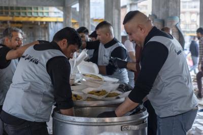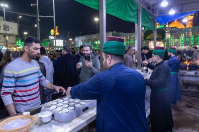 وتابع هنّون أنّ "شعبة السادة الخدم تقيم موكبًا في شارع باب القبلة، لتقديم الشاي للزائرين طيلة ليالي الشهر الفضيل، بدءًا من الفطور حتّى وقت السحور، إضافةً إلى توزيع وجبات بينية في أوقات متفاوتة بشكل يومي".