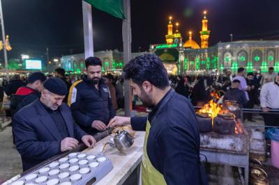 وأضاف أنّ "الخدمات تتضمّن تقديم وجبات الإفطار، وتهيئة الأماكن المخصّصة لجلوس الزائرين وتنظيم حركتهم، فضلًا عن تعطير المرقد الطاهر لأبي الفضل العباس(عليه السلام) وتبخيره؛ لضمان توفير أجواءٍ مناسبة لهم".