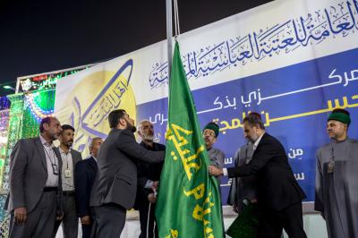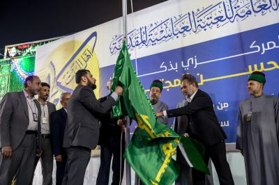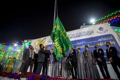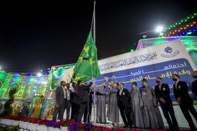 Le sanctuaire saint Al Abbas (p) a organisé la cérémonie de levée de la bannière de l'Imam Al Hassan al-Mujtaba (que la paix soit sur lui) à l'occasion de l'anniversaire de sa naissance, dans la cour de la Qibla du sanctuaire d'Aba al-Fadl al-Abbas (que la paix soit sur lui), coïncidant avec sa levée dans tous les sanctuaires sacrés d'Irak.