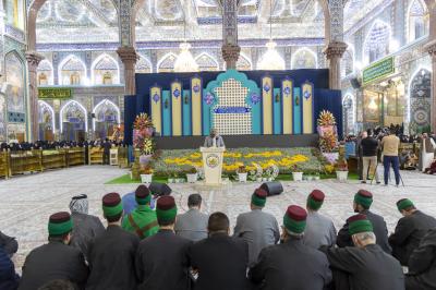 The celebration began with the recitation of a verse from the Holy Quran, recited by the reader Mohammed Redha al-Sarraf, followed by the speech of the Two Holy Shrines delivered by the member of the board of Directors of the Al-Abbas's (p) holy shrine, Dr. Afdhal al-Shami, in which he called to emulate the biography of Imam al-Hassan al-Mujtaba (peace be upon him) and adhere to the Sunnah and prophetic ethics, as this is a way to get closer to Allah Almighty, followed by a speech to the people of the holy city of Karbala delivered by Dr. Ahmed Al-Saffar al-Karbalai.