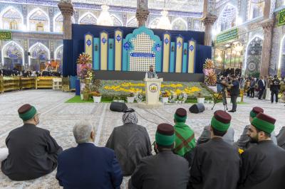 The ceremony was held in the courtyard of the shrine of Imam al-Hussayn (peace be upon him), in the presence of representatives of the two holy shrines and processions of the people of Karbala with its varieties, limbs and bodies, along with a group of visitors.