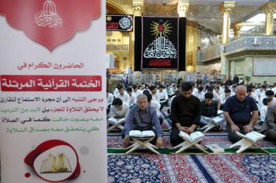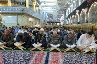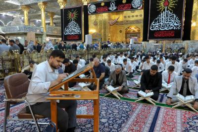 أشرك المجمَعُ العلميّ للقرآن الكريم في العتبة العبّاسية المقدّسة، طلبة المدارس الثانويّة بالختمة القرآنيّة في صحن مرقد أبي الفضل العباس(عليه السلام).
