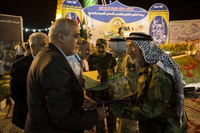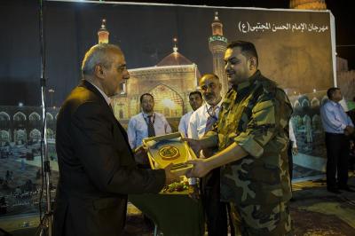 بعدها قدّمت فرقةُ إنشاد براعم العتبتين المقدّسين موشّحاتٍ دينية تخصّ هذه المناسبة العطرة، ليكون مسك ختام الحفل تكريم أبطال الحشد الشعبيّ المقدّس من كبار السنّ في مدينة الحلّة وعددٍ من الشخصيات الحاضرة.