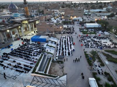 He added that "Iftar meals were distributed at the sites of the northern courtyard, the courtyard opposite the Imam Al-Mahdi (may Allah hasten his holy reappearance) gate, which are designated for women, the Qibla gate, in addition to the Askariyayn shrine's guesthouse, as well as the northern canopy of the shrine of Imam Ali Al-Hadi (peace be upon him)."
