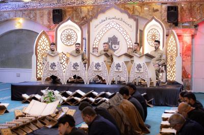 شارك قرّاء من القوات الأمنية في الختمة القرآنية المركزية المرتلة التي يقيمها المجمع العلمي للقرآن الكريم في العتبة العباسية المقدسة ببغداد.