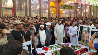Mukaddes Hz. Huseyn ve Hz.Abbas (Allah'ın selâmı üzerlerine olsun) Türbeleri; Mukaddes Hz.Huseyn (Allah'ın selâmı üzerine olsun) Türbesi’ne bağlı Hz.Ali Ekber (Allah'ın selâmı üzerine olsun) Sancağı teşkilatında, tekfirci sapık çetelere karşı vatanını ve mukaddes değerlerini müdafaa ederken şehadet şerefine nail olan yiğitlerini uğurladı. Yüce Allah’ın “Müminlerden Allah'a verdikleri ahde sadakat gösteren erler vardır; böylece onlardan kimi adağını gerçekleştirmiş (şehit düşmüş), kimi de beklemektedir. Onlar hiçbir şekilde (verdikleri sözlerini) değiştirmemişlerdir” buyruğunun ışığında şehitler Abdulkerim el-Hasnawî, Faris el-Hicamî ve Hasan ez-Zeynî; Beyci’de İslam ve insanlık düşmanı DAİŞ (DAEŞ,IŞİD) terörüne karşı Irak’ı, halkını ve mukaddes değerleri uğruna pak canlarını ve kanlarını feda ederek şahadet şerefine nail oldu.