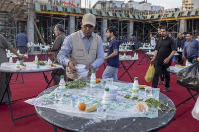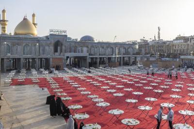 The Al-Abbas's (p) holy shrine provided more than 10,000 iftar meals for visitors, including various types of food, on the last Thursday night of the holy month of Ramadan at Umm al-Baneen Courtyard (peace be upon her).