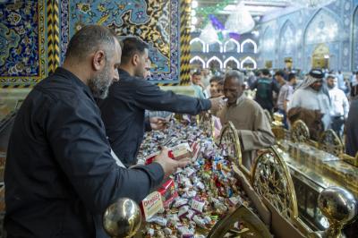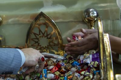 The staffs of the Holy Shrine congratulated the visitors and distributed candy pieces to them as an expression of joy on this great occasion.