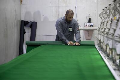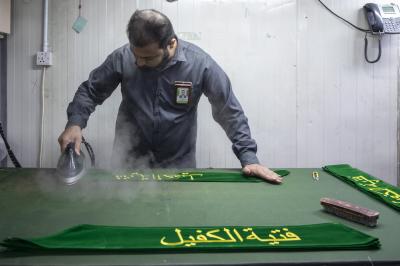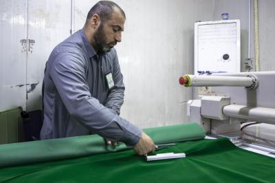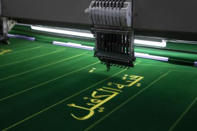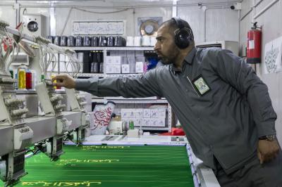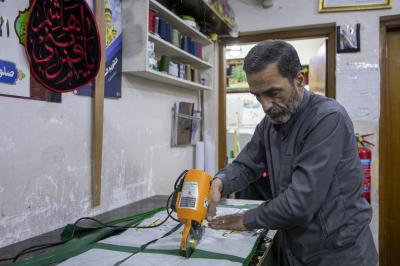 وأضاف أنّ "الأوشحة تصُمّم وتخُيّط في المكائن العاملة بالأنظمة الإلكترونيّة، في حين يتولّى منتسبو الشعبة وضع اللّمسات النهائيّة عليها وإكمال الخطّ" مشيرًا إلى أنّ "الأقمشة المستخدمة في خياطة الأوشحة والأعلام تُعدّ ذات جودة عالية".