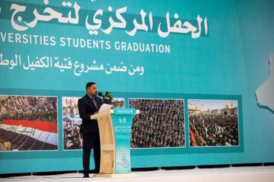 وأوضح أنّ "أبي الفضل العباس (عليه السلام) لم يكن رمزًا للفداء فقط، بل كان قدوة في الطاعة، والانضباط، والبصيرة، وهي ذات القيم التي نحتاجها اليوم في ساحات العمل والإصلاح وبناء الوطن" لافتًا إلى أنّ "الحفل يرسل رسالة إلى العالم، مفادها أنّ العراق لا يُبنى بالسلاح فقط، بل بهؤلاء الشباب الذين يقفون اليوم بثوب التخرج، يقابلون التاريخ بعيونٍ تفيض بالعلم، والكرامة، والانتماء".