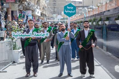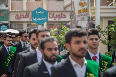 The participating students gathered on Imam Ali Street to begin the activities of the march, which starts towards the shrine of Imam al-Hussayn(peace be upon him), and then towards the area between the Two Holy Shrines, reaching the shrine of Aba al-Fadl al-Abbas (peace be upon him) and gathering in the courtyard of Bab al-Qibla.