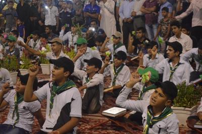 أقامت وحدة الأنشطة والمخيمات في شعبة الطفولة والناشئة التابعة لقسم الشؤون الفكرية والثقافية في العتبة العباسية المقدسة احتفالية بمناسبة ولادة كريم أهل البيت الإمام الحسن المجتبى (عليه السلام) حيث تضمنت هذه الاحتفالية والتي شهدت حضور ومشاركة عدد كبير من الزائرين الكرام العديد من الفقرات والتي كان أولها إقامة محفل قرآني خاص بالأشبال التابعين الى كشافة الكفيل.