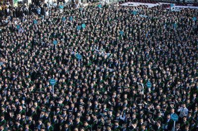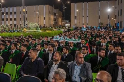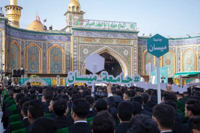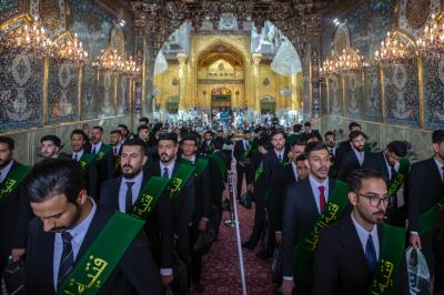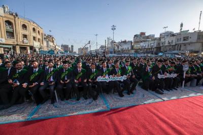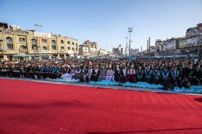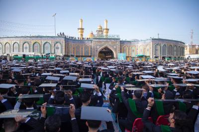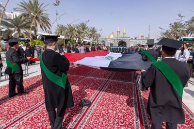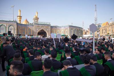 جاء ذلك في أثناء حضوره فعاليات الحفل المركزي لتخرُّج طلبة الجامعات العراقية (دفعة على هدي القمر الخامسة)، والذي نظَّمته شعبةُ العلاقات الجامعية والمدرسيّة التابعة لقسم العلاقات العامّة في العتبة العباسية المقدّسة، تحت شعار (من غيث كربلاء ينبت العطاء)، ضمن مشروع فتية الكفيل الوطنيّ، بمشاركة نحو 5 آلاف طالبٍ يمثّلون 64 جامعةً من مختلف محافظات العراق.