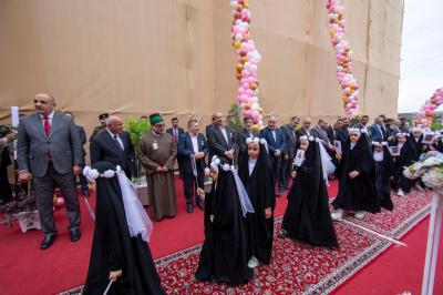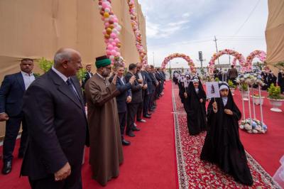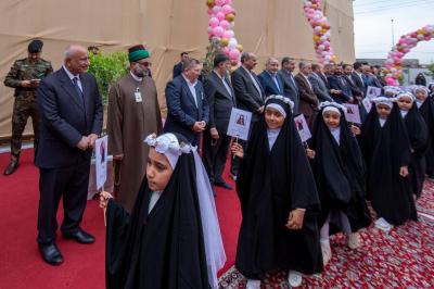وكان في استقبال المشاركات، إلى جانب الأمين العام، أعضاءُ مجلس إدارة العتبة المقدسة ومسؤولوها ورؤساءُ أقسامها، بالإضافة إلى محافظ كربلاء المقدسة السيد نصيف الخطابي والمدير العام لتربية المحافظة السيد وميض التميمي، وشخصيات أكاديمية، وتربوية، وأهالي التلميذات.