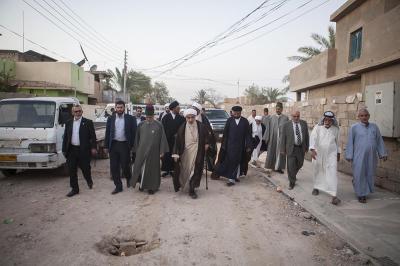 تواصلاً مع عوائل الشهداء والجرحى واستمراراً لسلسلة الزيارات التفقّدية لهم زار وفدٌ من العتبتين المقدّستين الحسينية والعباسية مجالس العزاء في منطقة خان بني سعد المنكوبة في محافظة ديالى التي تعرّضت لحادثٍ إرهابيّ مجرم قبل يومٍ من عيد الفطر المبارك مخلّفاً المئات من الشهداء والجرحى رجالاً ونساءً وأطفالاً وشيوخاً، وجاءت هذه الزيارة لتقديم الدعم الماديّ والمعنويّ لهذه العوائل ومواساتها في ظلّ الظروف الصعبة التي تعيشها وتمرّ بها، وقد كانت هناك كلمةٌ توجيهية لرئيس الوفد الشيخ عادل الوكيل جاء فيها: "أيّها الإخوة الكرام جئناكم من أرض الفداء أرض الحسين(عليه السلام) لنعزّيكم ونواسيكم في الوقت الذي ندعو الله سبحانه وتعالى أن يلهم ذوي الشهداء الصبر والسلوان وأن يمنّ على الجرحى بالشفاء العاجل، فكما تعلمون إخواني الأعزّاء أنّ المستهدف ليس فقط أتباع أهل البيت(عليهم السلام) بل جميع مكوّنات الشعب العراقي ومحافظة ديالى تعيش التآلف والمودّة، لذلك جئناكم اليوم بوصيّةٍ ونحن على يقينٍ بأنّكم متمسّكون بها وهي ما أوصى بها سابقاً سماحةُ السيد السيستاني(دام ظلّه)، عليكم بضبط النفس لأنّ الشعب العراقيّ في الواقع مستهدف بجميع أطيافه وأنتم على علمٍ أنّ العصابات الإجرامية دخلت في مناطق ليست شيعية وعملوا ما عملوا بعوائلها من قتلٍ وتنكيل".