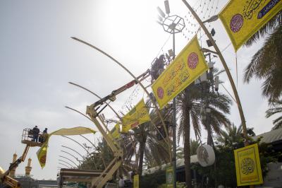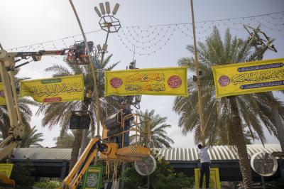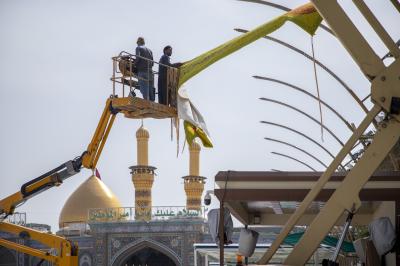 پرسنل بخش بین الحرمین آستان مقدس عباسی پرچمها و پلاکاردهایی را به مناسبت سالروز میلاد حضرت فاطمه معصومه (علیها السلام) نصب کردند.