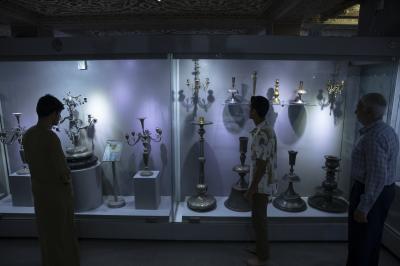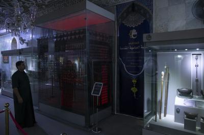 وأضاف أنَّ القطع النفيسة المعروضة تمثل نحو 5% من إجمالي القطع الموجودة في المخزن التابع للمتحف، وهذه القطع تتلقَّى إدامة دورية تتراوح مدتها بين ثلاثة إلى ستة أشهر، حسب نوع المادة المعروضة سواء كانت من المعادن كالنحاس، أو الورق كالمخطوطات، أو الحلي كالذهب والفضة، وكذلك الأعلام والسجاد والستائر، من قبل ملاكات مختصة تعمل في مختبر مجهز لهذا الغرض.