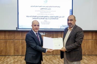 وأضاف أنّ الندوة ألقاها كل من: الدكتور محمد حمزة، والدكتور فراس ناصر، والمهندس حسن فلاح الحسناوي، استعرضوا فيها أبرز أسباب ظواهر العنف والانتحار والتطرف، وبيّنوا سبل الوقاية منها، مؤكدين أهمية دور المؤسسات التعليمية والمجتمعية في تعزيز قيم التسامح والوعي المجتمعي.