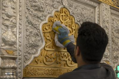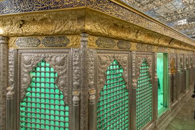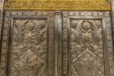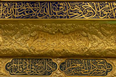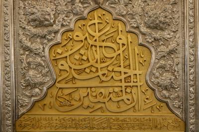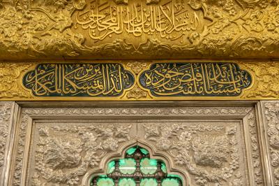 وأضاف، أن أعلى الشبّاك يحتوي على شريطٍ كتابيّ خُطّت عليه الآيات (16 - 22) من سورة التوبة، ويقع أسفل الشبّاك شريطٌ ذهبيّ خُطّ في منتصفه جزءٌ من الآية 72 من سورة التوبة، لافتًا، إلى أنّ جانبي الشريط الذهبيّ خُطّت عليهما أجزاء من زيارة أبي الفضل العباس(عليه السلام).