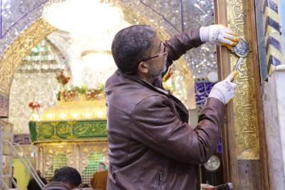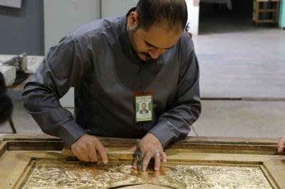 في السياق نفسه بيّن معاون رئيس القسم، المهندس حسام محمد "ثُبّتت القطع المعدنية المطلية بالذهب وقطع المينا الزجاجية الملونة، وزودنا إدارة المزار بأبعاد الباب لتغليفه بالزجاج المقسى؛ لحمايته من العوامل الجوية.