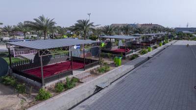 به گفته وی، تعداد استراحتگاههای خصوصی ۲۹ استراحتگاه است که شامل کلبه های کوچک حاوی آشپزخانه، سرویس بهداشتی کامل و بازیهای تفریحی است و حریمی را برای خانوادهها ایجاد میکند چرا که با دیوارهایی از درختان کوچک احاطه و از فضای خارجی جدا شده است.