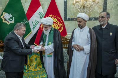 For his part, the head of the delegation, Sheikh Mohammed Mahdi Sibawayh, said, "We were honored to visit the shrine of Aba al-Fadl al-Abbas (peace be upon them), and we presented the banner of the shrine of Imam ar-Redha (peace be upon him) on the occasion of his auspicious birth anniversary, to the Al-Abbas's (p) holy shrine."