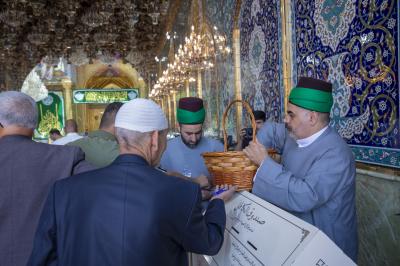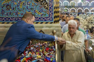 Wahudumu wa kitengo cha kusimamia haram tukufu na idara ya masayyid wameshiriki katika kugawa pipi (halwa), malalo ya Abulfadhil Abbasi (a.s) imeshuhudia idadi kubwa ya mazuwaru waliokuja kuadhimisha tukio hilo.