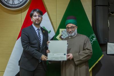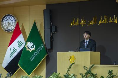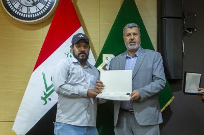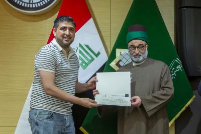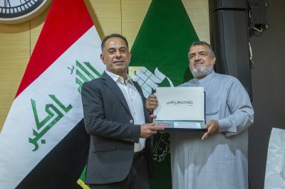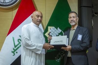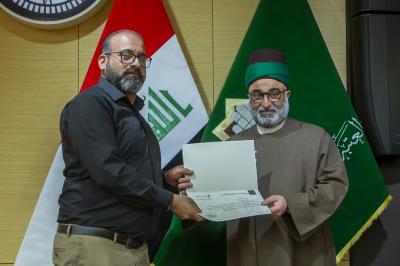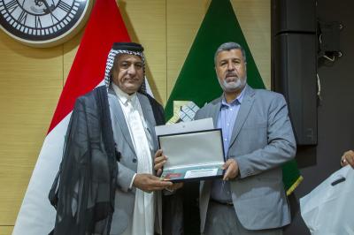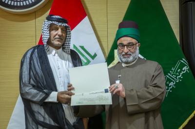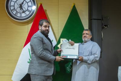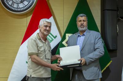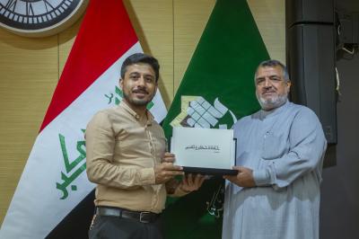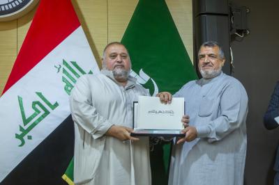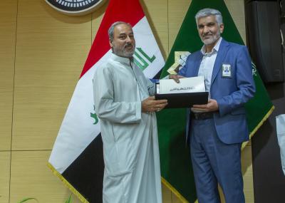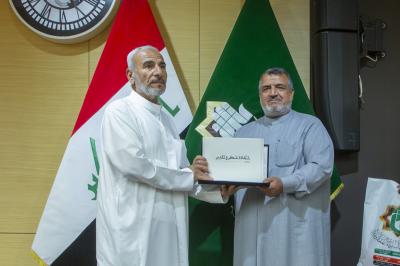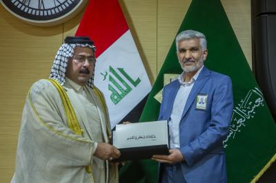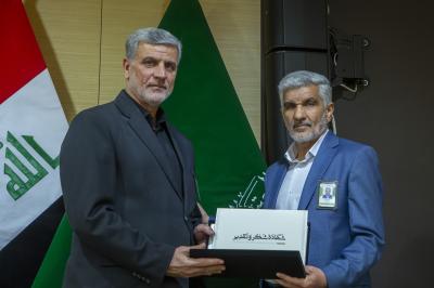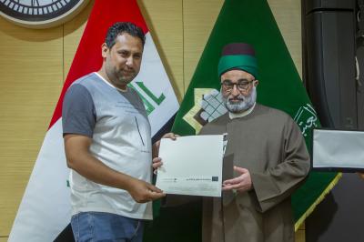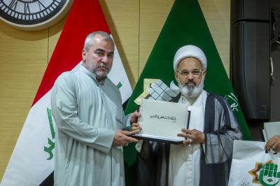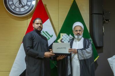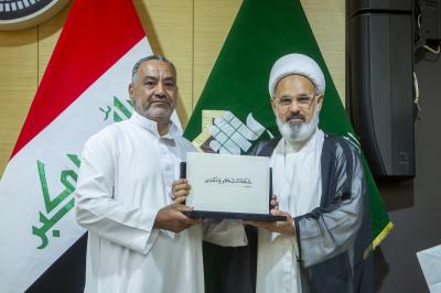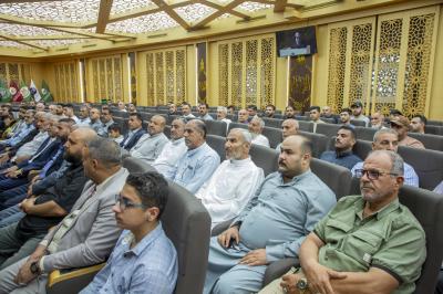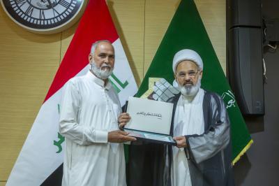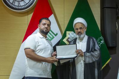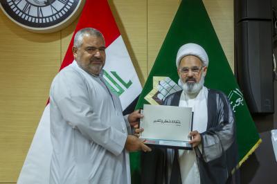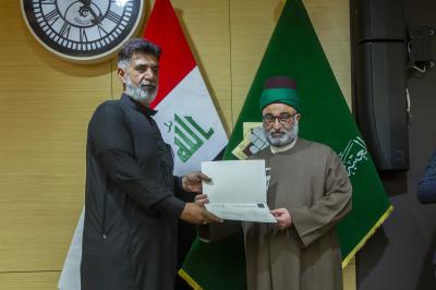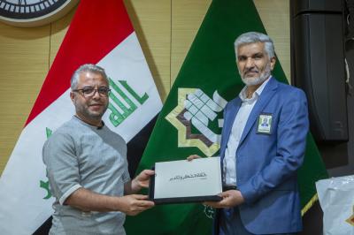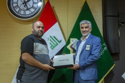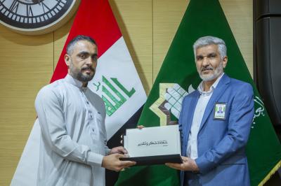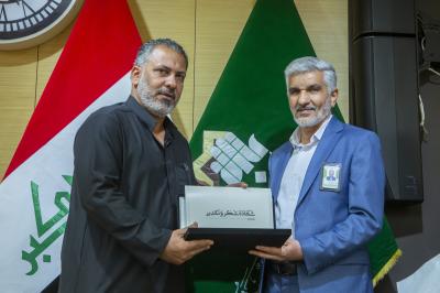 Die Ehrung fand in Anwesenheit des Generalsekretärs des Heiligen Schreins, Sayed Mustafa Murtada Al Diauddin, und einer Reihe seiner Beamten und Abteilungsleiter sowie einer Gruppe von Inhabern von Husseinitischen-Prozessionen und Einrichtungen in Karbalaa statt.